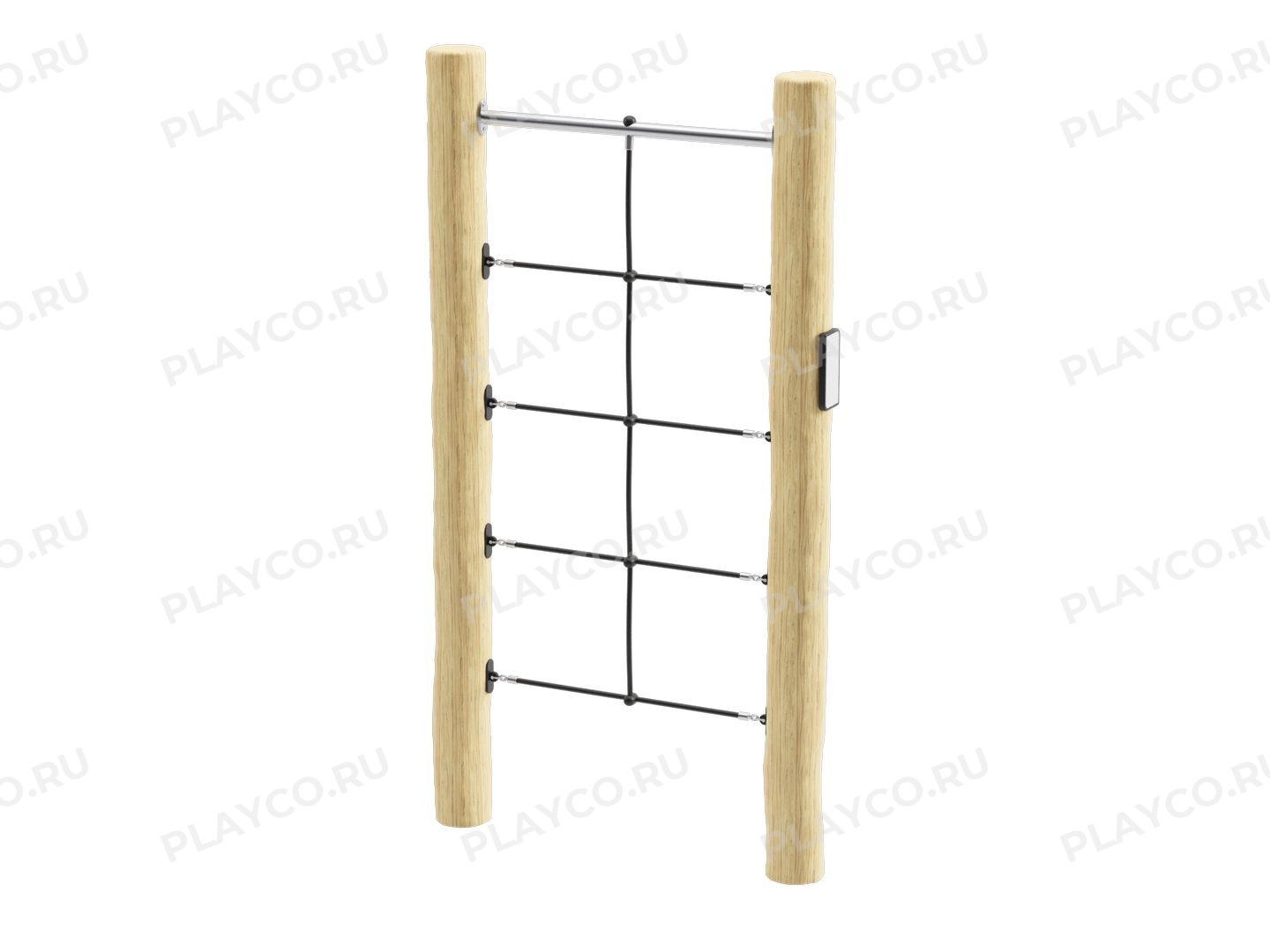 Удобная шведская стенка серии Play Eco с канатной сеткой на деревянных стойках — функциональный элемент для лазания и упражнений на развитие силы, выносливости, координации и ловкости, подходит детям, подросткам и взрослым.