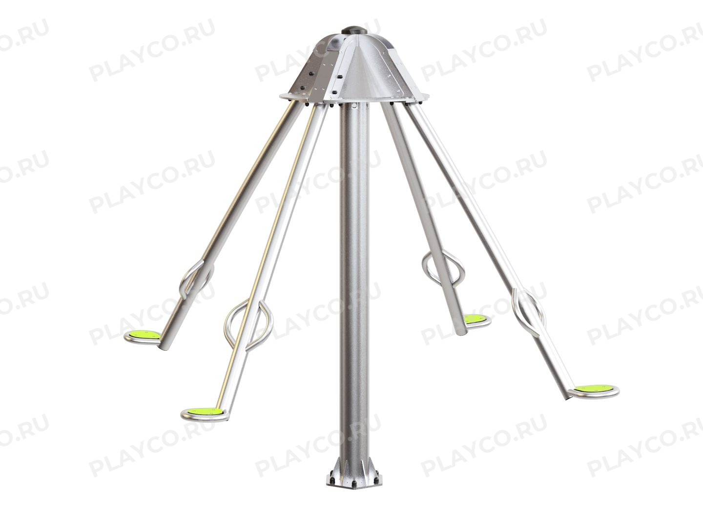 Карусель Swing Spring из серии Fun Forest для детей от 7 лет. Конструкция выполнена из нержавеющей стали с порошковым покрытием. На концах каждого рычага — круглые противоскользящие платформы. Рассчитана на 4 посадочных места. Благодаря своей минималистичной форме она занимает меньше места, чем классические дисковые карусели.