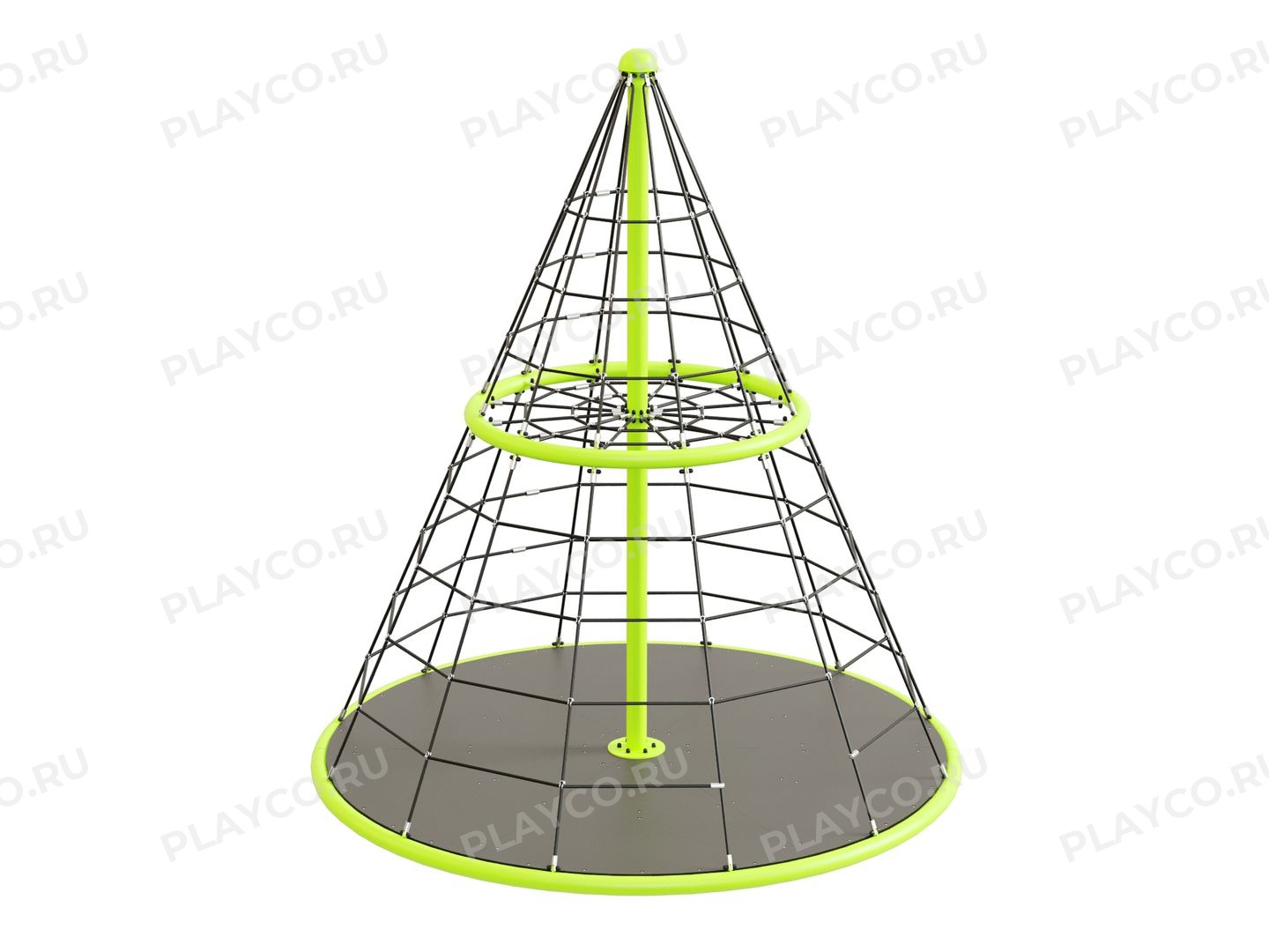 Эта конструкция серии Fun Forest совмещает в себе функции карусели и веревочного лабиринта. Она выполнена из прочных синтетических канатов и каркаса из нержавеющей стали с центральной опорой, окрашенной в яркий салатовый цвет.