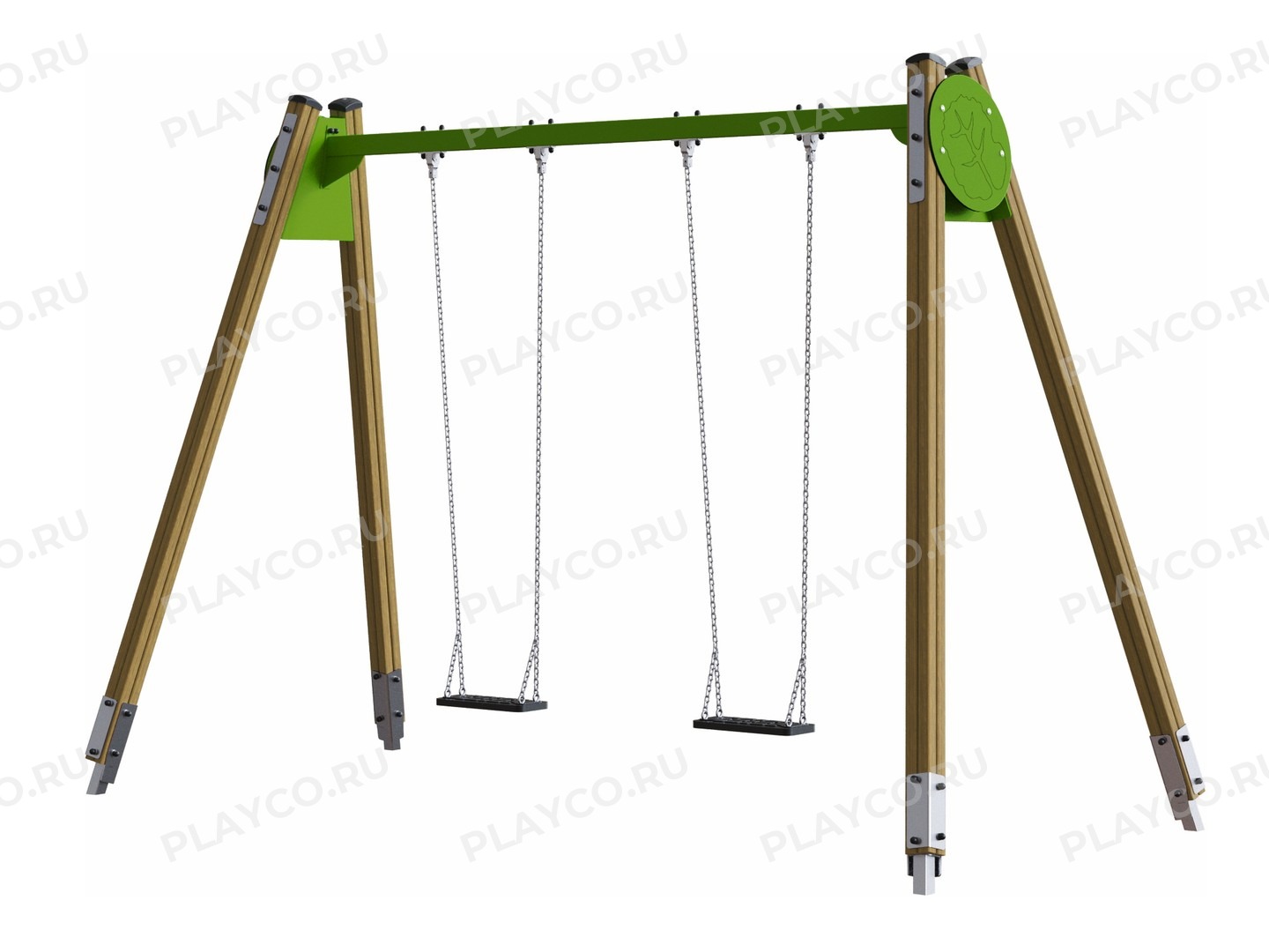 Двойные качели — универсальный элемент для детской площадки, подходящий как для малышей, так и для детей постарше. Отлично вписываются в любой ландшафт и побуждают к играм на свежем воздухе. Конструкция выполнена из клееного бруса в, HPL-панелей и прочных цепей. Несущая балка усилена, опоры с декоративными элементами обеспечивают устойчивость. Качели развивают вестибулярный аппарат, координацию и чувство ритма, позволяют качаться вместе с друзьями или родителями.