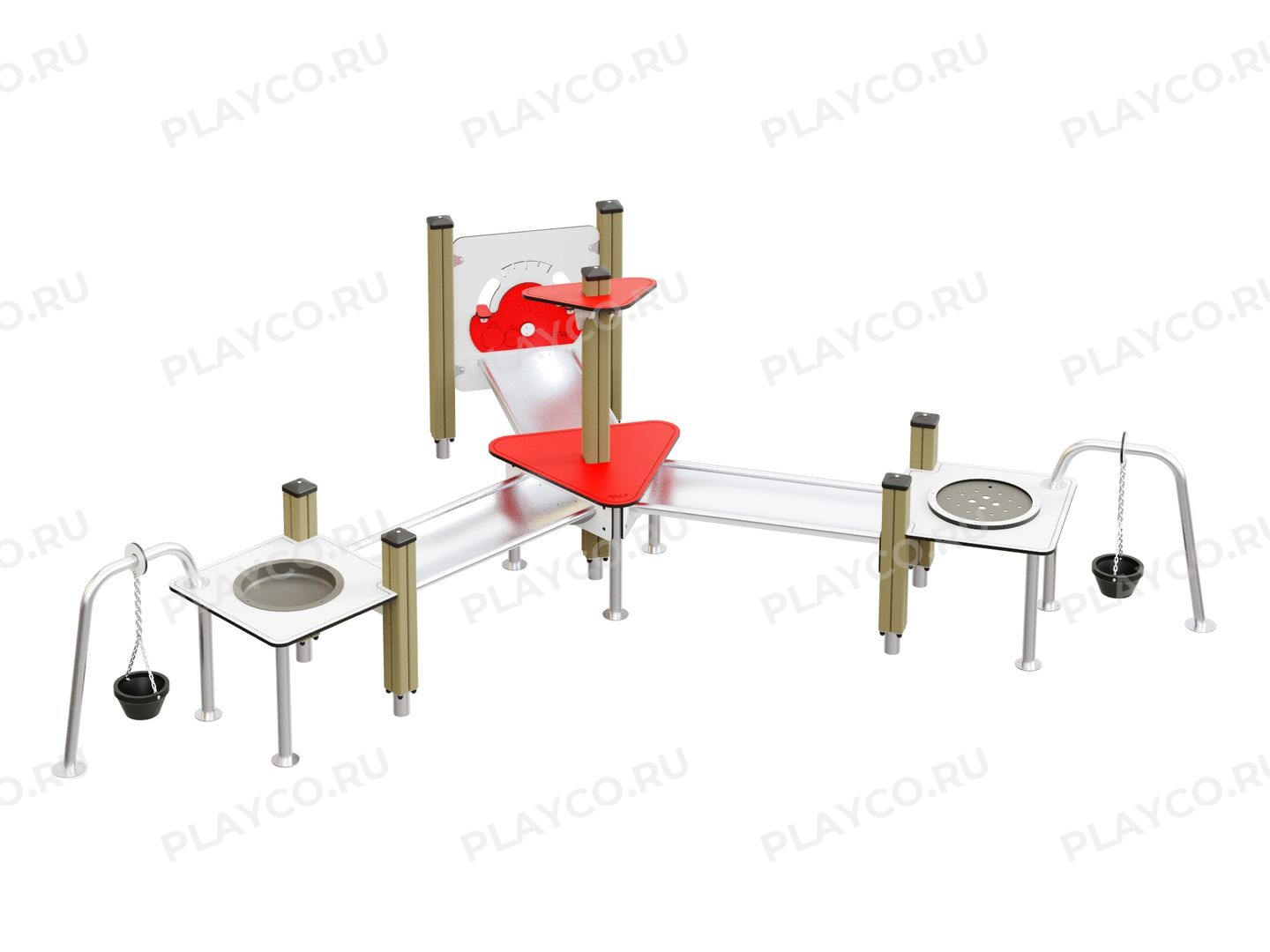 Песочный дворик серии Magic Castle для детей в возрасте от 1 года. Конструкция выполнена из влагостойких HPL-панелей и клееного бруса. Игры с песком развивают мелкую моторику и воображение.