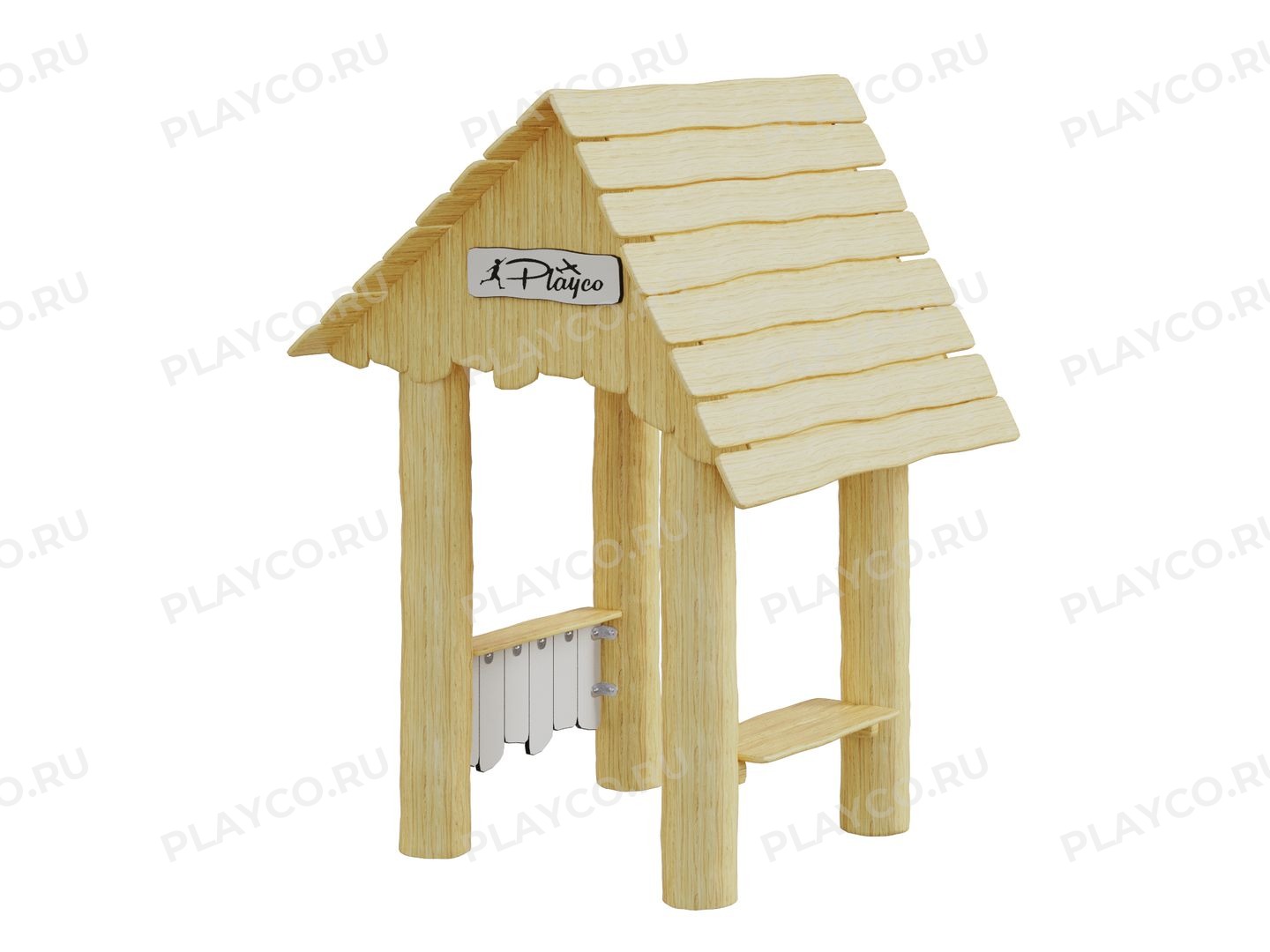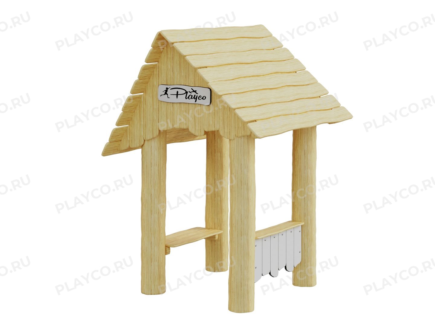 Домик-беседка серии Play Eco для детей от 1 года. Конструкция выполнена в экостиле из натуральной древесины (лиственницы, ели или акации на выбор). Он идеально подходит для тематических игр, развития воображения и весёлого общения на свежем воздухе.