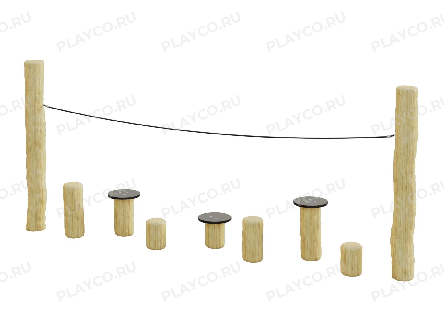 Игровой элемент серии Play Eco предназначен для детей от 3 лет. Конструкция выполнена из натуральной древесины (лиственницы, ели или акации на выбор) с сохранением её естественной текстуры и формы. Модель представляет собой спортивный снаряд для тренировки ловкости и координации движений.