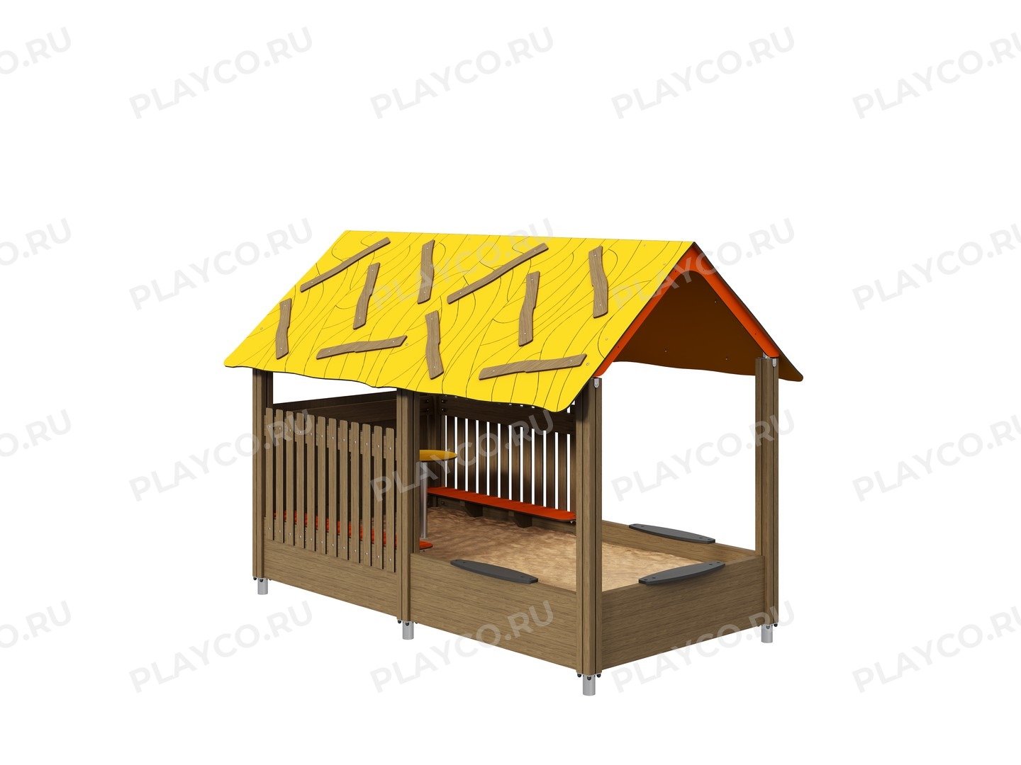 Песочница с крышей серии Safari & Drive для игр малышей от 1 года. Конструкция выполнена из влагостойких HPL-панелей и клееного бруса. Двускатная крыша защищает от дождя и солнца, а встроенные игровые панели делают игру разнообразной и увлекательной.