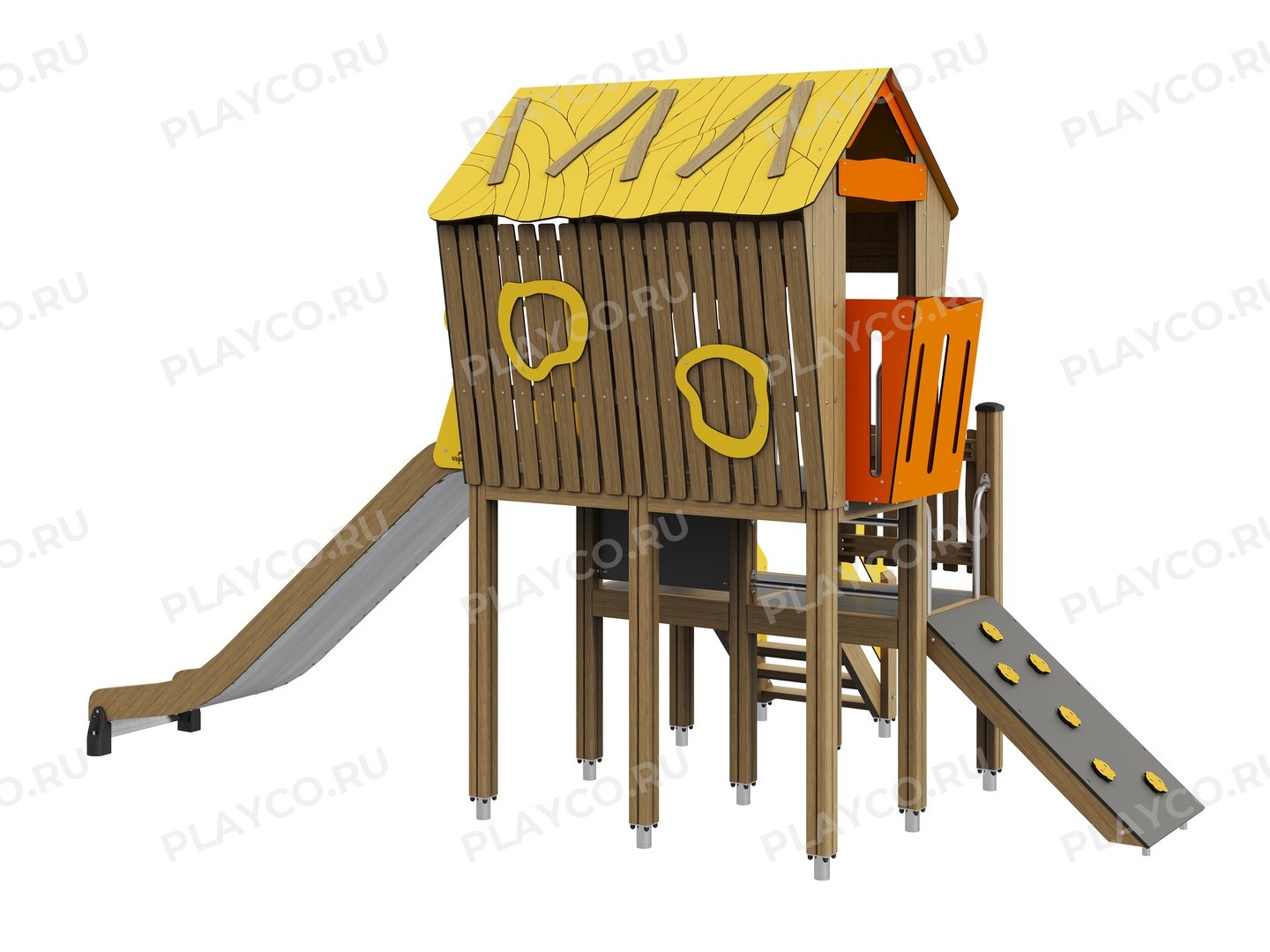 Развить координацию и силы поможет наклонный трап с удобными зацепами. Высокая горка с плавным изгибом и высокими бортиками гарантируют безопасный и увлекательный спуск.