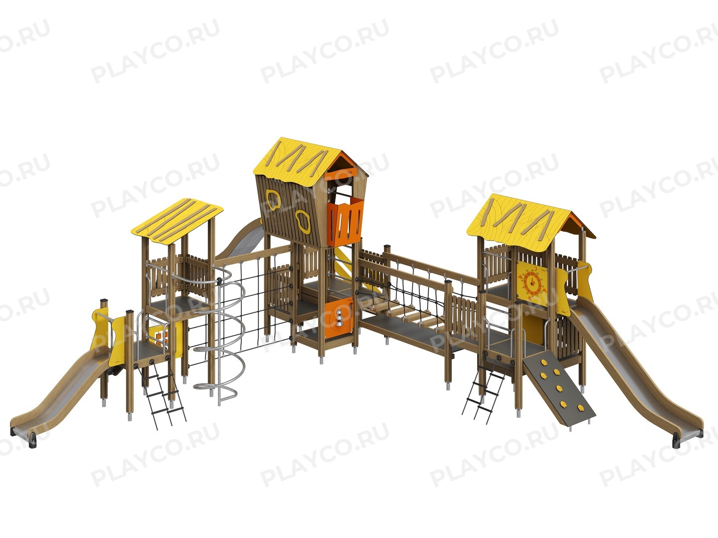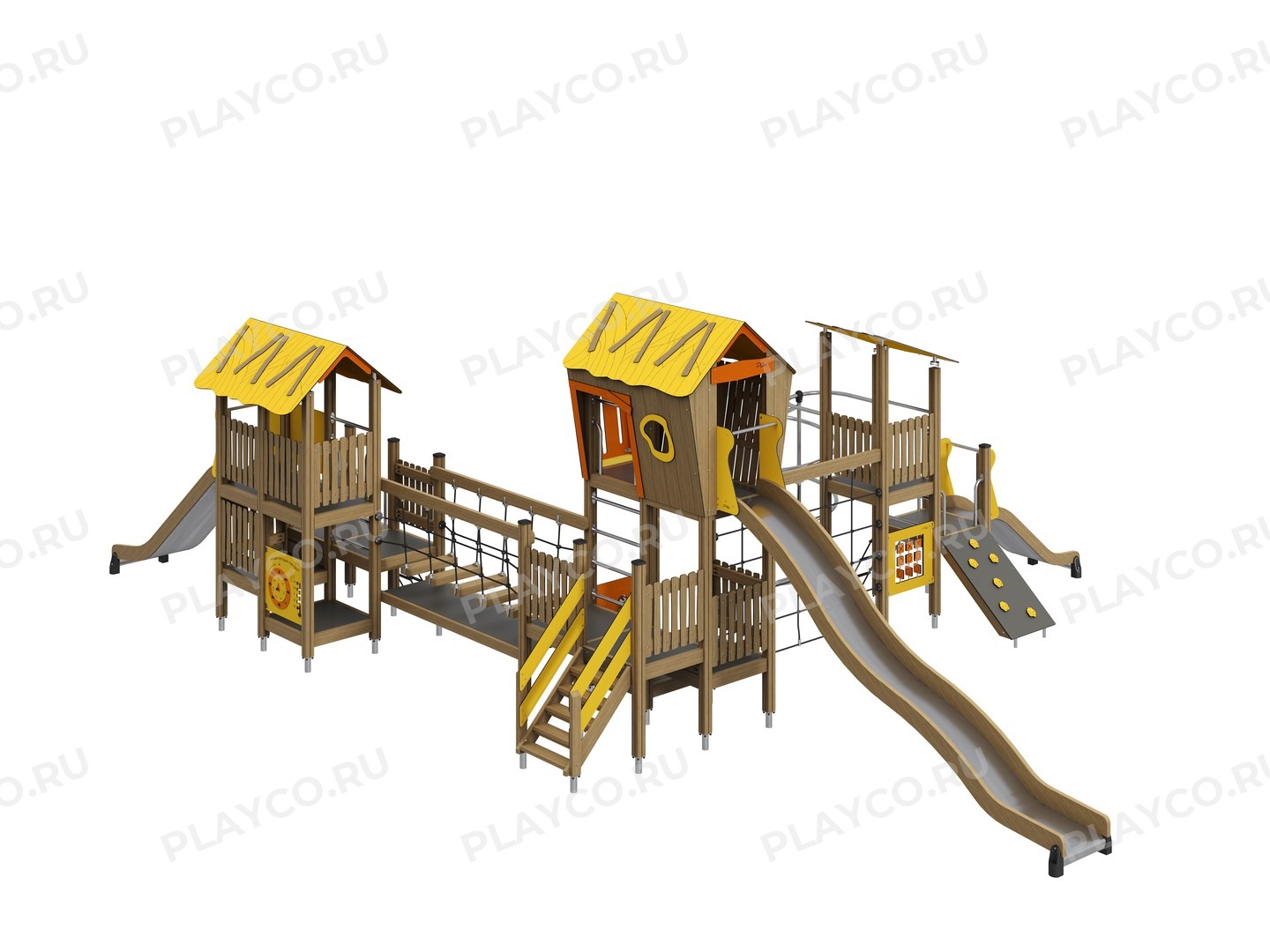 Детский игровой комплекс серии Safari & Drive предназначен для детей в возрасте от 7 лет. Конструкция состоит из клеёного бруса, HPL-панелей, элементов из нержавеющей стали и прочных канатов. Комплекс оснащён игровыми панелями, горками разной высоты, сетками для лазания и канатным мостом — всем, что нужно для увлекательной игры!