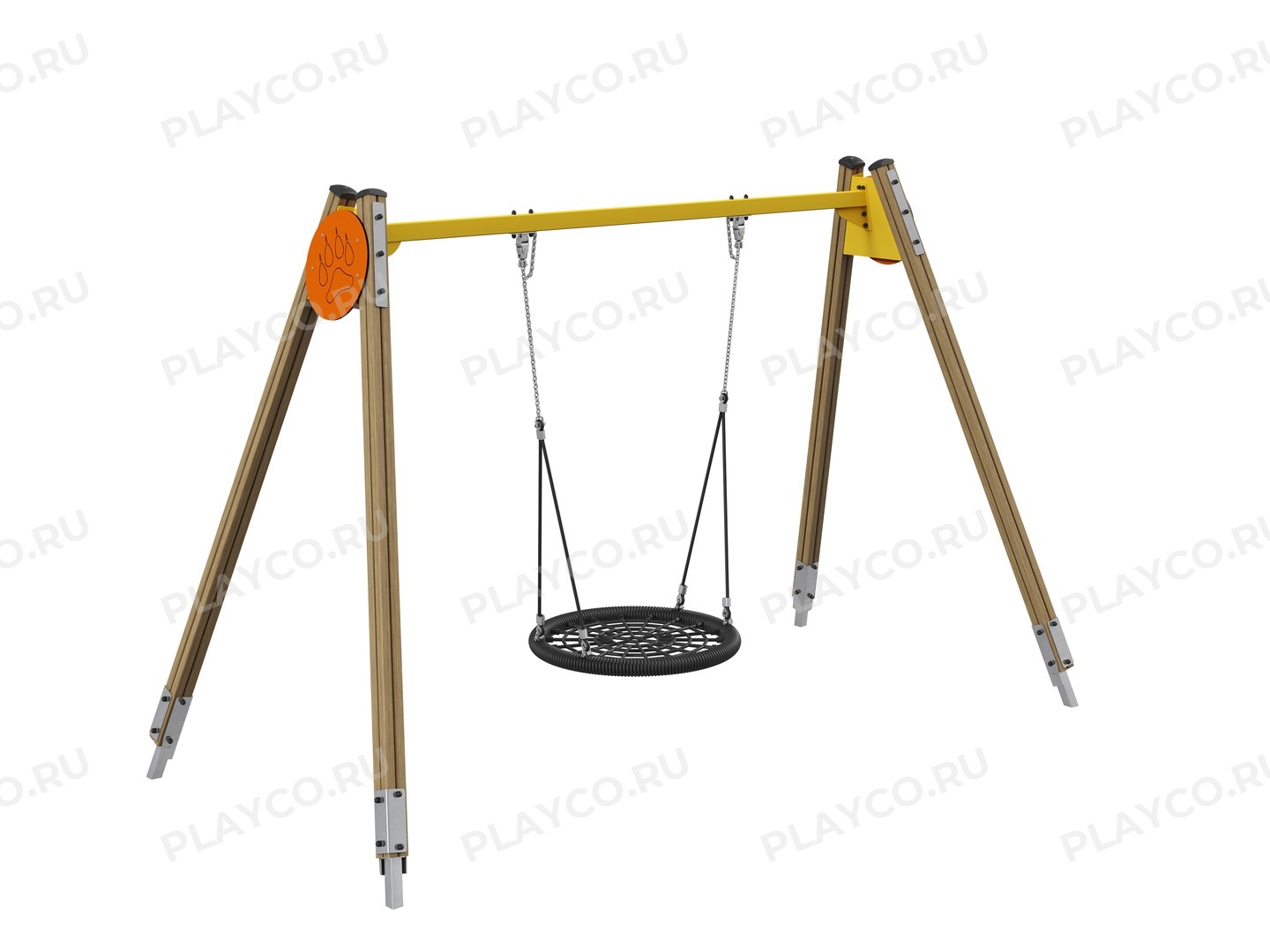 Качели – гнездо серии Safari & Drive предназначен для детей в возрасте от 3 лет. Конструкция выполнена из клееного бруса и HPL-панелей в качестве акцента. Большое круглое сиденье "гнездо" из плетёных канатов обеспечивает удобное положение и безопасность во время игры.