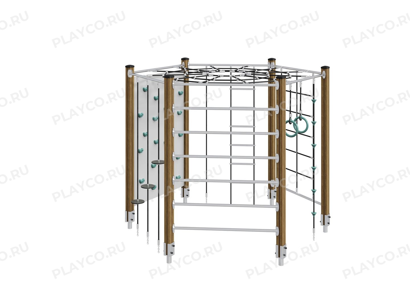 Конструкция для лазания со скалодромом серии Spider Two для детей от 7 лет. Модель выполнена из отборного клееного бруса, прочных канатных сеток и качественных пластиковых элементов. Этот комплекс объединяет в себе несколько классических гимнастических снарядов, что позволяет прорабатывать разные группы мышц.