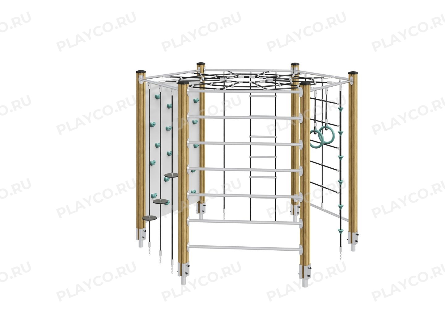Конструкция для лазания со скалодромом серии Spider Two для детей от 7 лет. Модель выполнена из отборного клееного бруса, прочных канатных сеток и качественных пластиковых элементов. Этот комплекс объединяет в себе несколько классических гимнастических снарядов, что позволяет прорабатывать разные группы мышц.