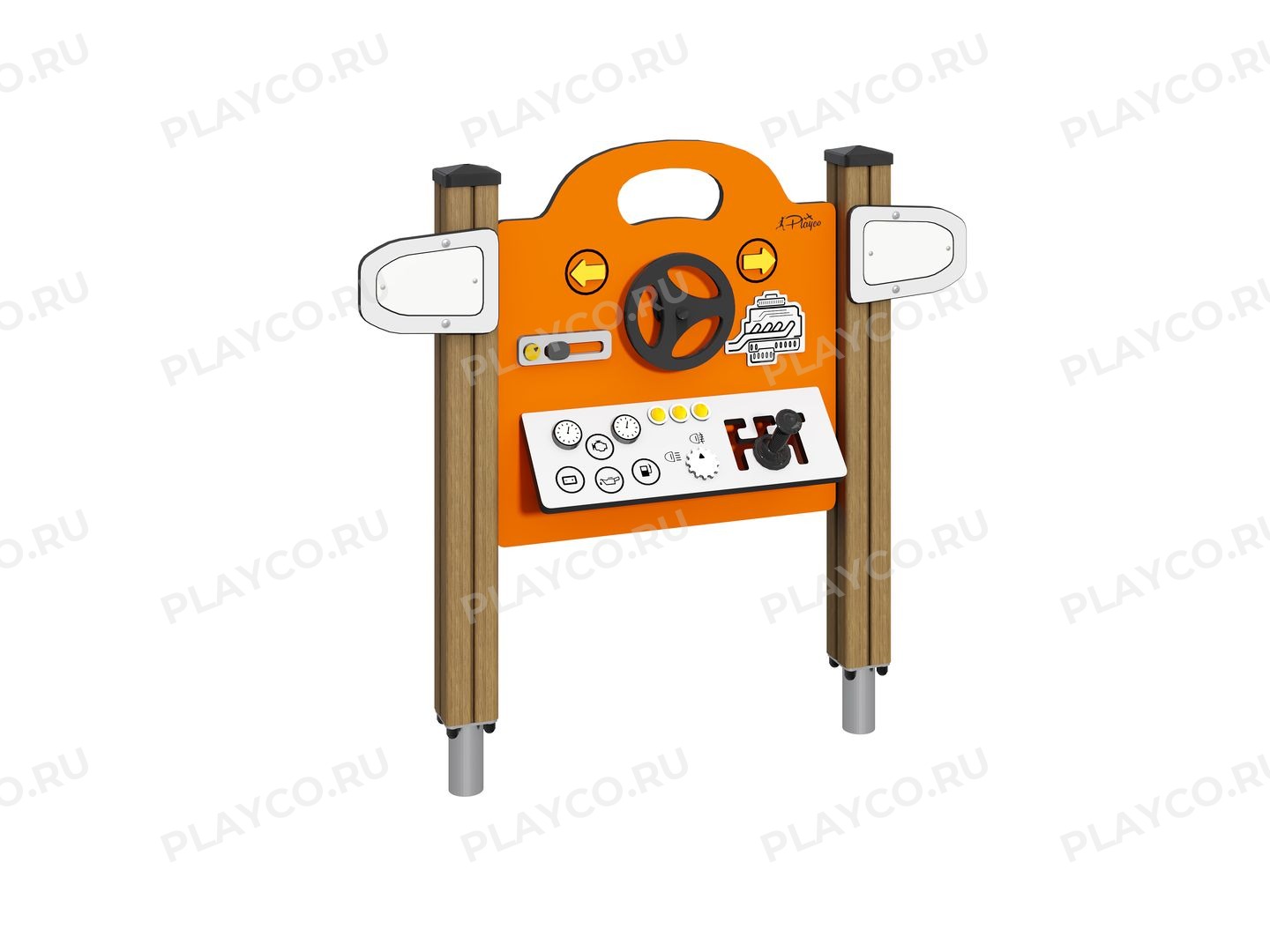 Игровая панель «Автомобиль» от Playco для детей от одного года. Панель выполнена из прочных ярких HPL-панелей и надежных опор из клиеного бруса. Она имитирует приборную панель автомобиля. Панель вовлекает детей в активную сюжетную игру, помогая развивать координацию движений, воображение и навыки общения в процессе «поездки по городу».