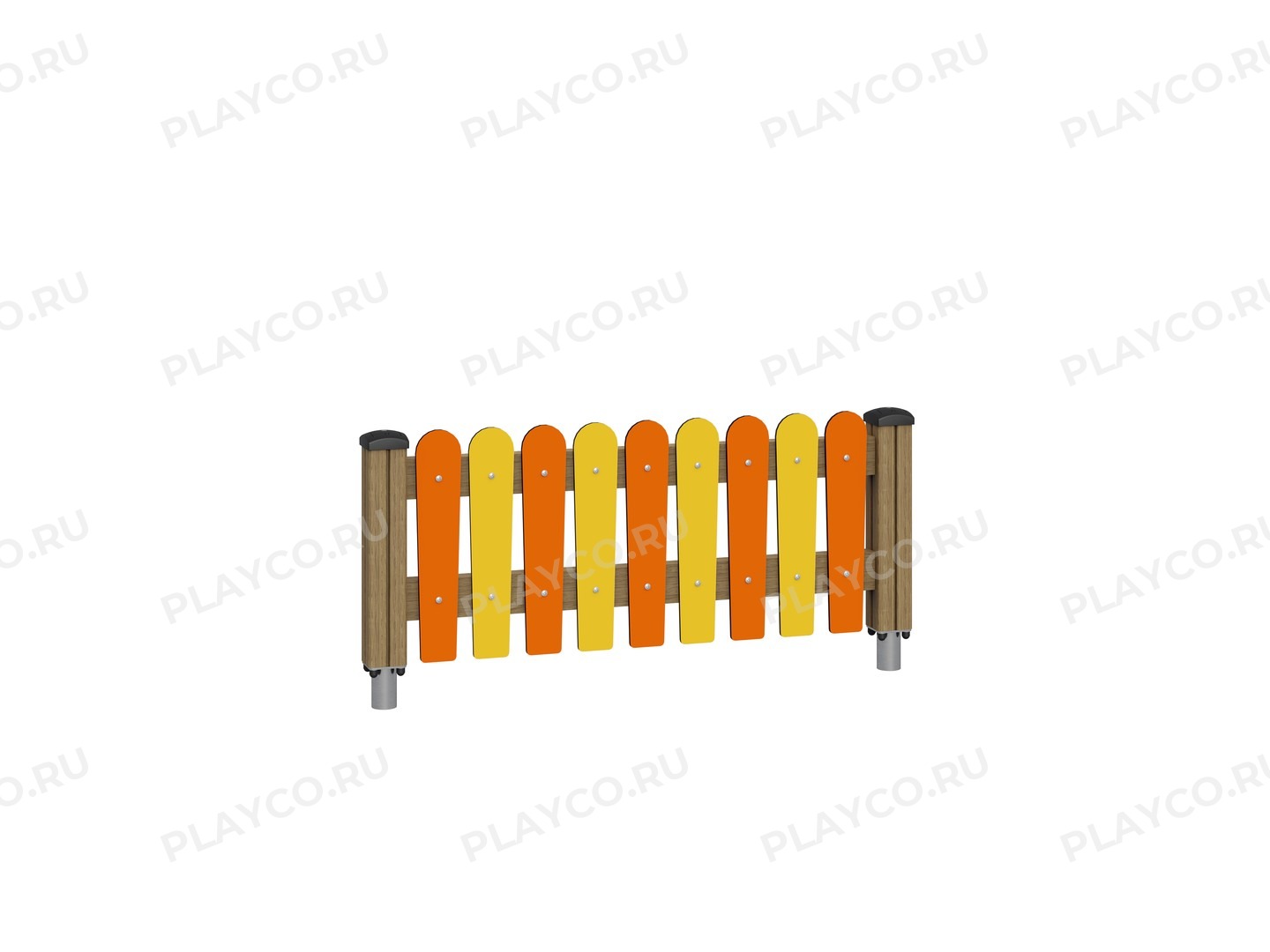 Декоративное ограждение для зонирования детской площадки серии Safari & Drive. Это яркий и безопасный элемент, который разграничивает пространство, защищает клумбы или создаёт тематические зоны. Конструкция выполнена из HPL-панелями в ярких цветах серии. Вертикальные планки с закруглёнными верхними краями, без острых углов. Надёжное крепление к грунту через металлические опоры.