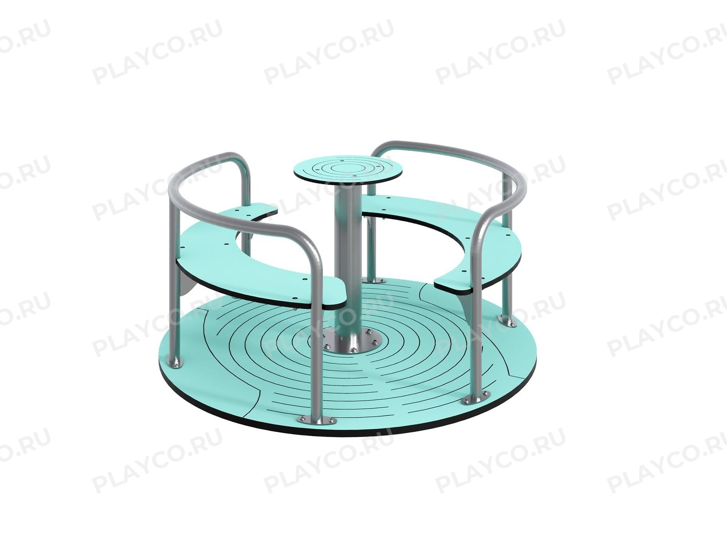 Карусель серии Sea Battle для детей в возрасте от 3 лет. Конструкция выполнена из нержавеющей стали с яркими сиденьями из HPL-панелей и платформой с противоскользящим покрытием.