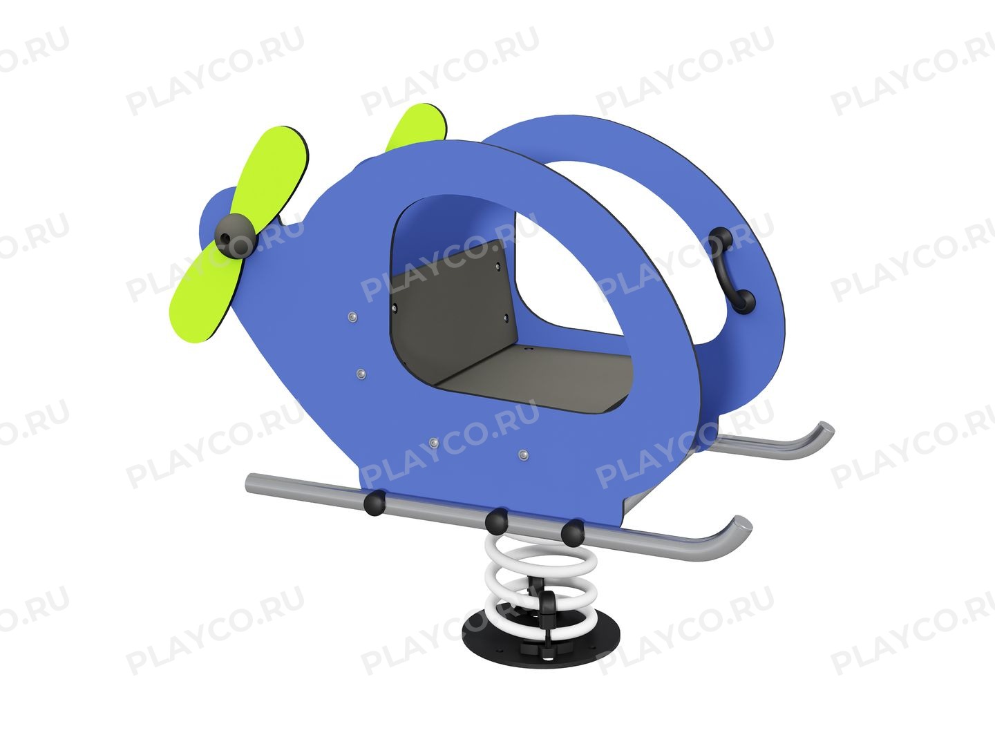 Классическая пружинная качалка в виде вертолета серии Sky Fly предназначена для малышей от 3 лет. Конструкция выполнена из влагостойких HPL-панелей. Сиденье с удобными поручнями и подножками для надёжного хвата. Мощная стальная пружина обеспечивает мягкое и безопасное качание.